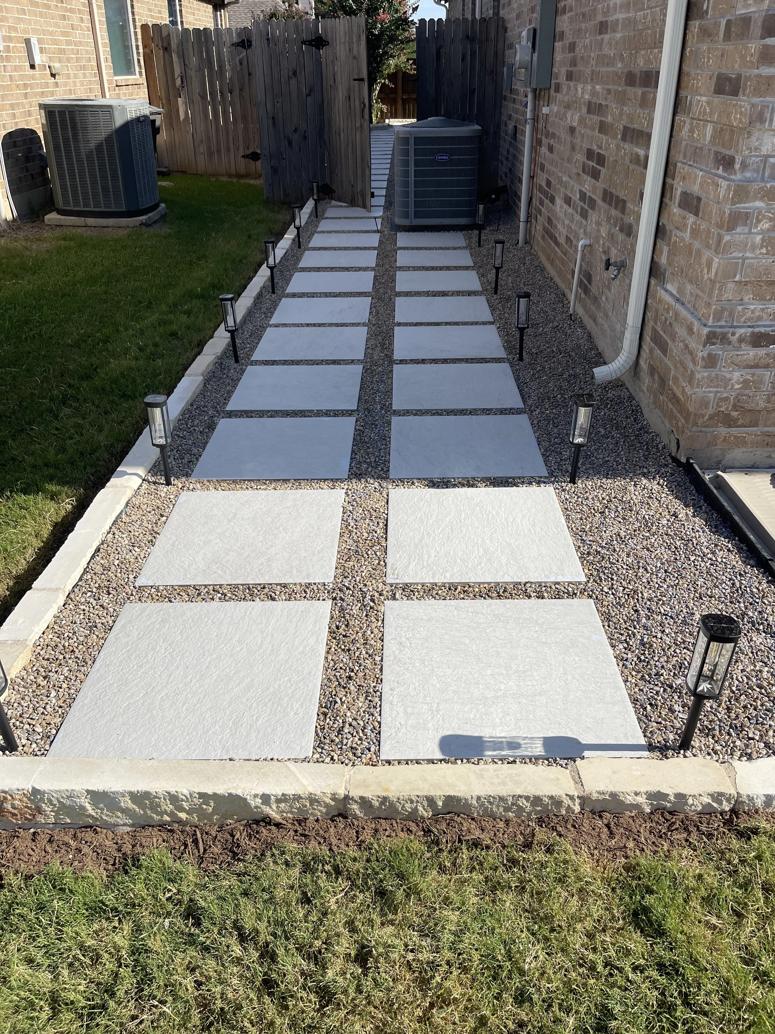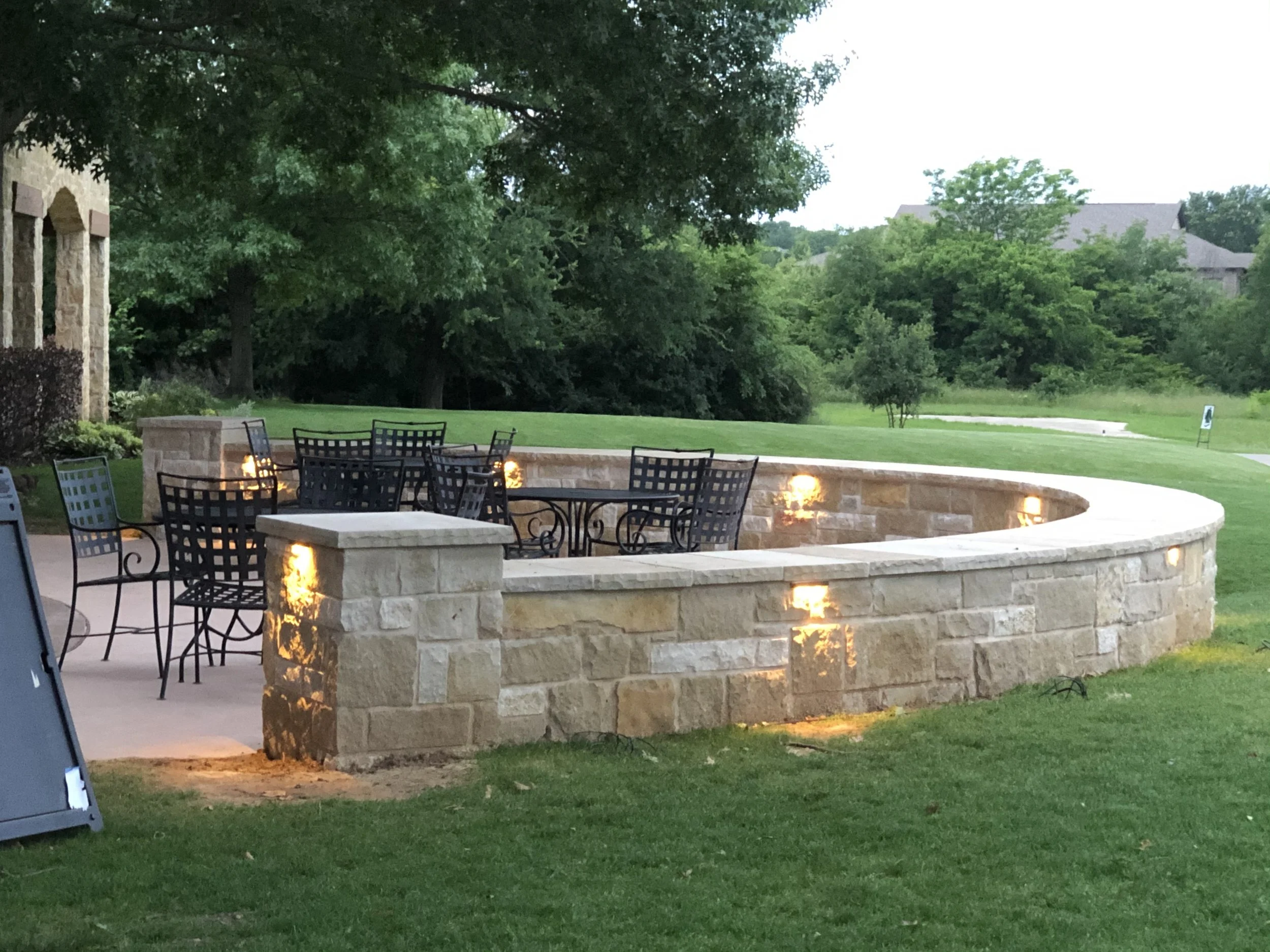 Hardscapes: patios, walkways, steps, retaining walls, and outdoor kitchens.
